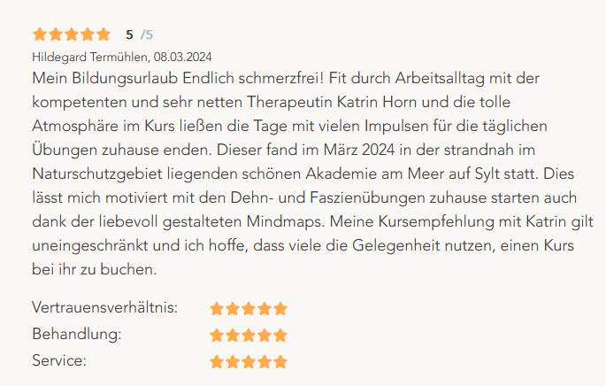 Ich biete verschiedene Bildungsurlaube zu den Themen Bewegung, Entspannung und Gesundheit an.